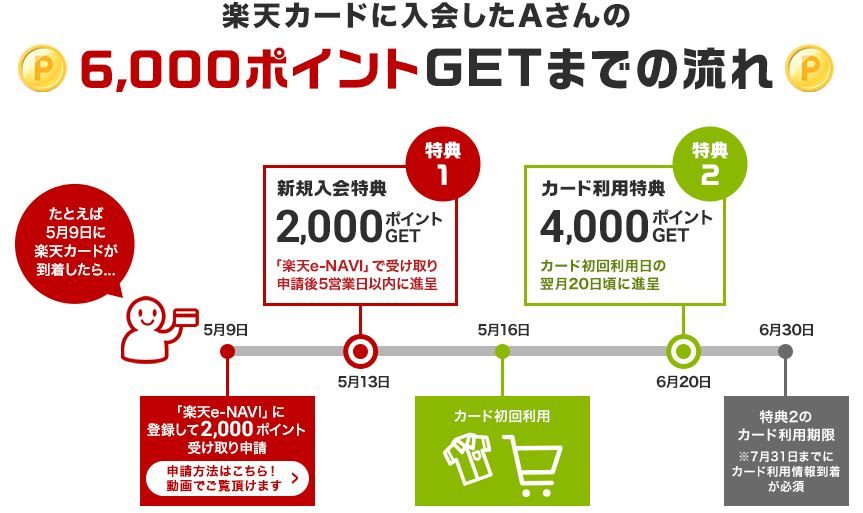 注意事項 1 入会特典のお受け取りには 楽天e naviへのご登録が必要です 楽天カードがお手元に届きましたら こちらよりご登録いただけます 2 入会特典のお受け取り申請後 数日以内に楽天カード申し込み時の楽天idに紐づく楽天ポイント口座に進呈されます. 2020年最新 このページでは楽天カード入会特典ポイントの 7000 or 8000ポイントキャンペーンがいつか についての予想と 特典ポイントを確実に受け取る方法について 分かりやすく解説していきます これから楽天カードを作ろうかと考えているのなら できれば入会ポイントを. 楽天カードの入会特典5000ポイントがもらえない 楽天カードの 賢い 失敗しない 申込み方法 顧客満足度ランキングで4年連続no1 を獲得し 名実共に人気ナンバーワンとなっている 楽天カード.