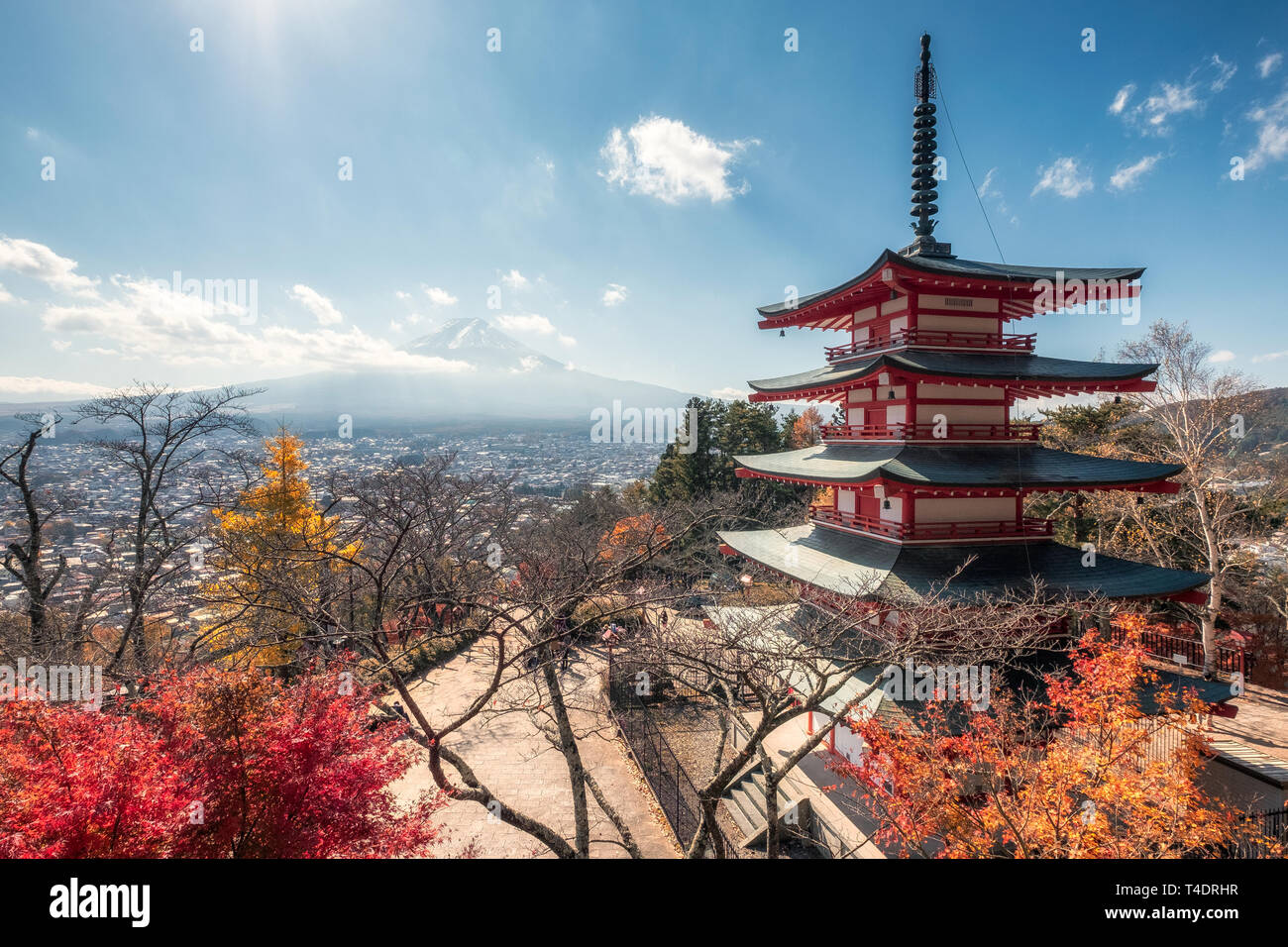 Chureito pagoda live view. Today chureito pagoda is one of the most iconic places to photograph mount fuji from. Fuji with chureito pagoda view of mount fuji with the city of fujiyoshida below it from arakura sengen shrine in yamanashi prefecture japan. You can go up to the pagoda by car but it would be a good idea to enjoy the view of mt fuji while going up the stone steps. Night view with cherry blossoms at chureito pagoda.