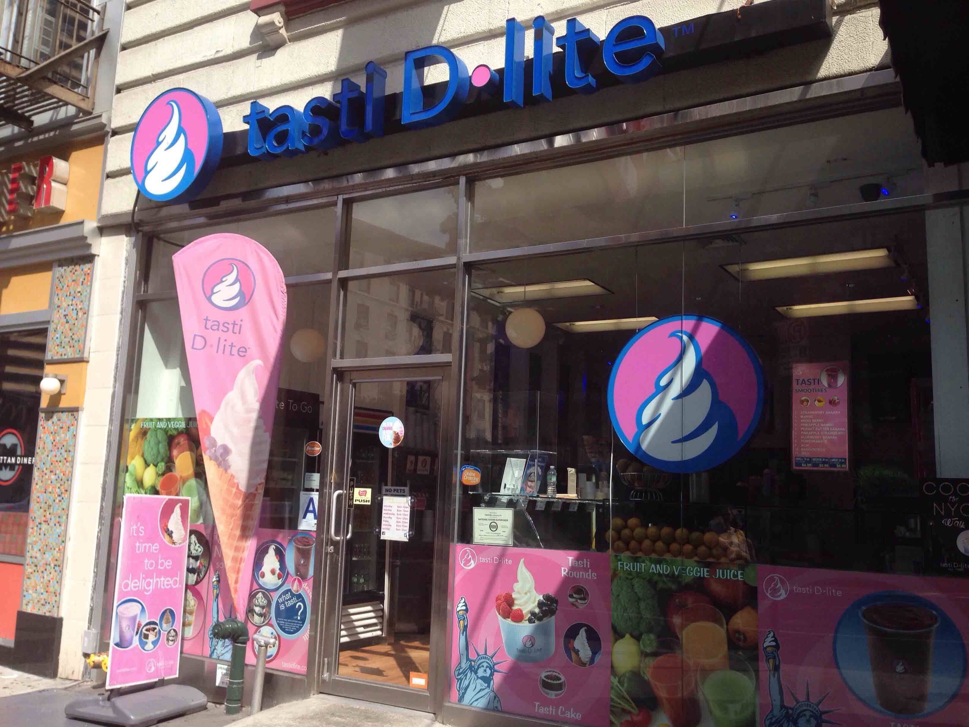 Tasti d lite a new york success story created in l987. Tasti d lite las vegas. Lite on upper east side 2nd and 1st ave 86th st that was on lexington ave and is new and better in my opinion it s near the q subway station elevator so when you get off the train you can grab some cool delight. The shop is like a huge candy store with dozens of toppings lined up for you to choose.